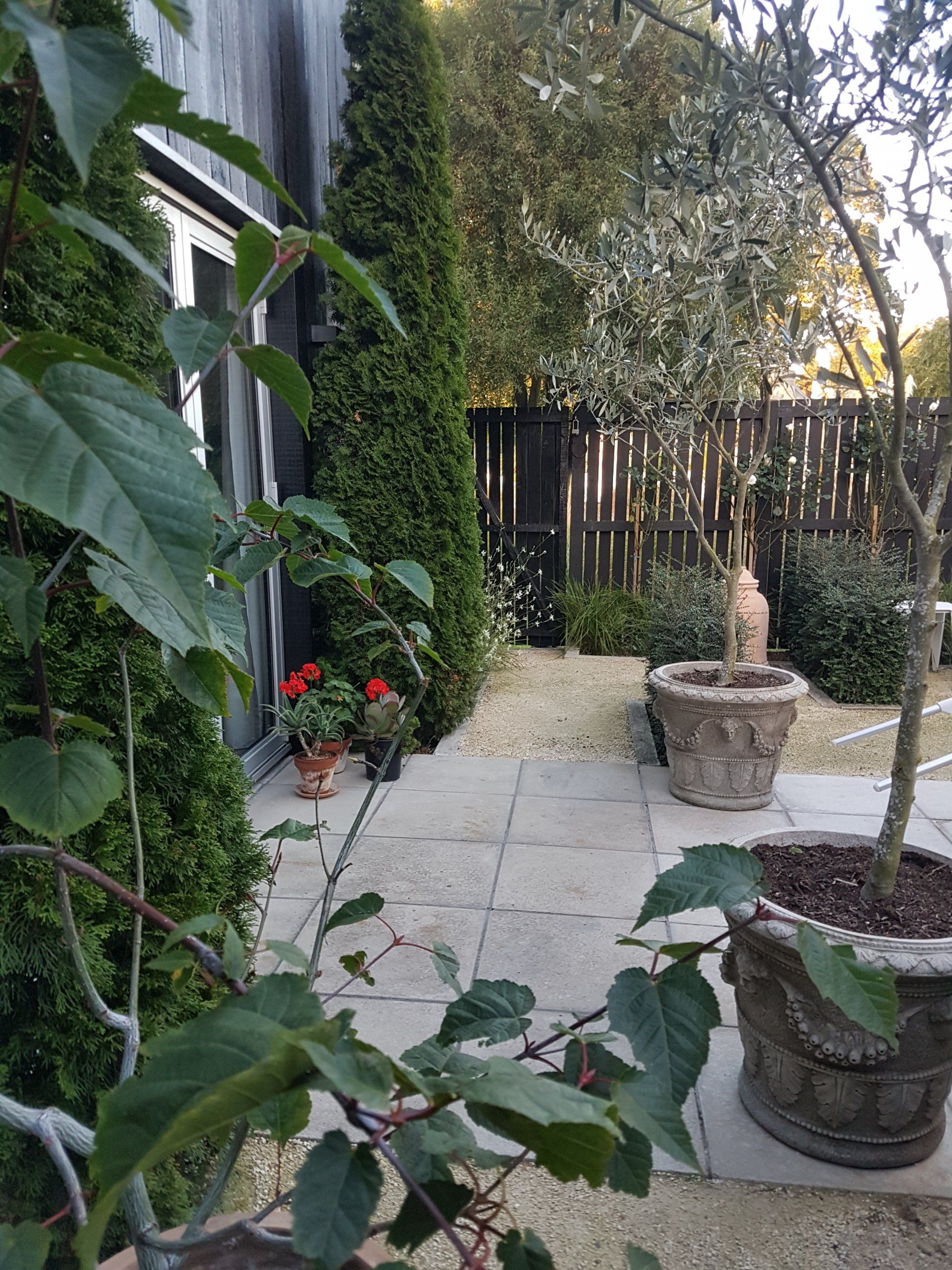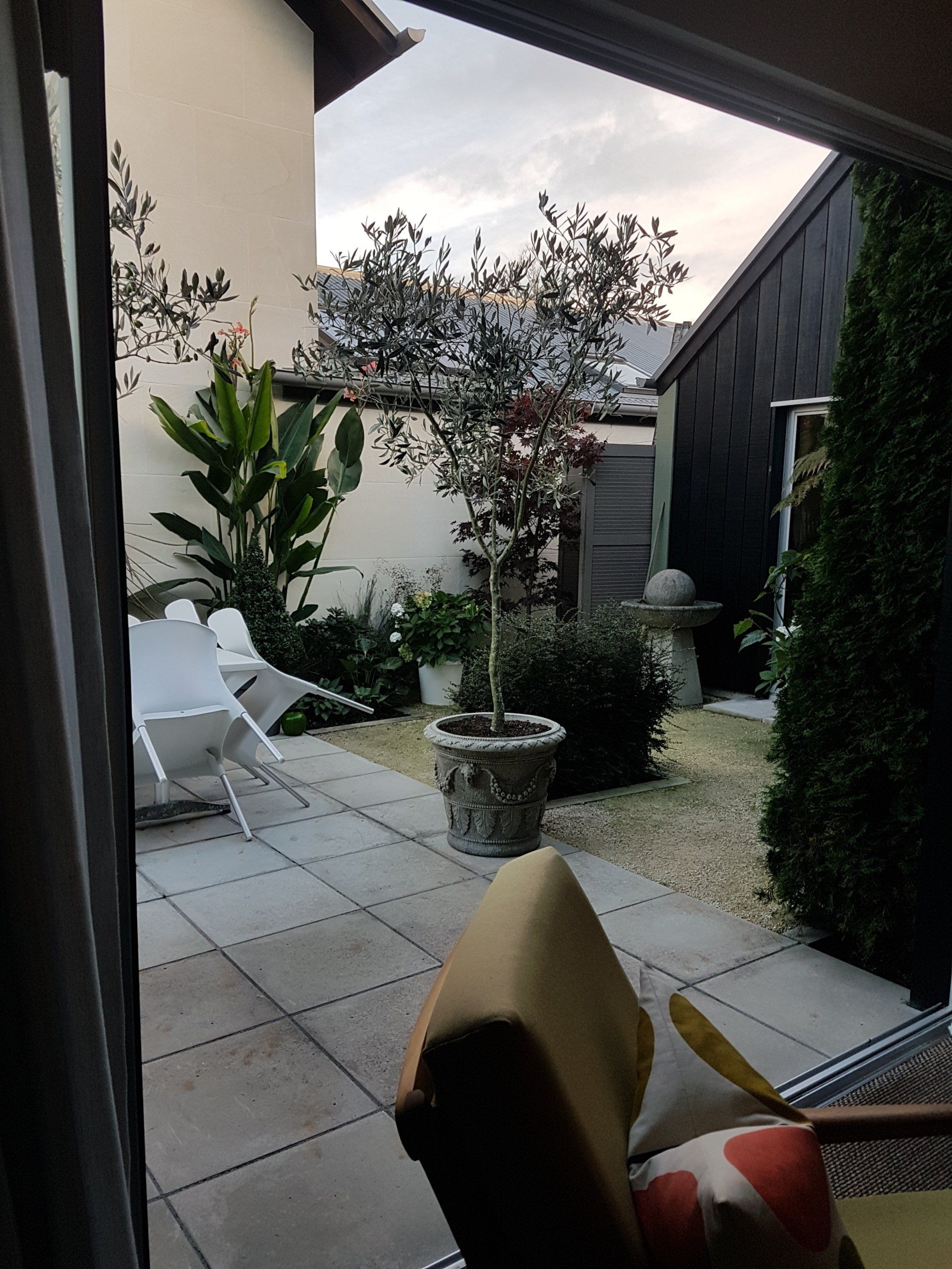 An existing Courtyard in the Christchurch suburb of Sumner. Small site (11x4m) uninspiring sterile and boring. Work within the existing confines of the established paving, but were required to soften and change its harsh lines and overall appearance. To create a courtyard oasis, private and tranquil with luxuriant foliage, a place to escape, relax and be at one with nature.